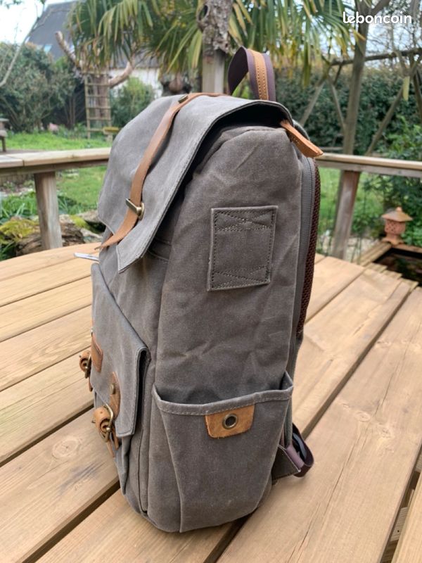 – Réalisé en toile étanche et lanières cuir